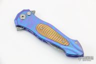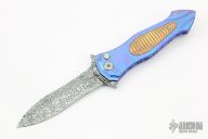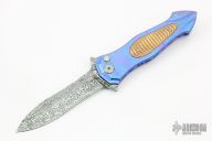 This Twist Tighe Nouveau button lock flipper by Brian Tighe features a wasp waist Damasteel dagger blade with false top edge. The handle has a milled timascus frame with mokume overlays, titanium clip, tip up carry. File work on inner edges of frame. Smooth action. Nice blade seating and lockup. Beautiful materials. Excellent condition. Comes with a Velcro case.