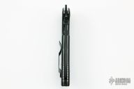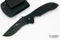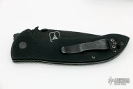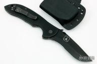 This production Super Commander BT has a black blade with a partially serrated edge. Has TAD stamp on back of blade, S/N 147. Comes with kydex sheath with slot to catch the wave feature. Comes with a zippered case. Has some scuffs and scratches, otherwise good condition.