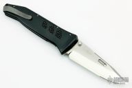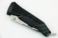 This TEI by Rockstead features a two tone blade with a notched thumbrest and dual thumbstuds. The handle is black aluminum with rayskin inlay. Tip up black stainless steel clip and a single stainless steel liner. Comes with original box and papers. S/N 008. Has a couple of light marks on the handle, otherwise excellent condition.