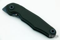 This Liong Mah designed linerlock by Warren Thomas features an anodized titanium chisel ground blade with carbidized edge and single thumbstud. The handle has carbon fiber scales with an anodized titanium liner and tip up clip. Comes with a zippered case. Excellent condition.