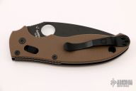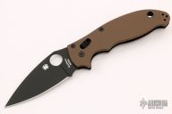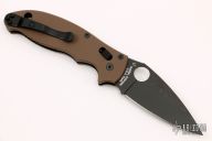This Spyderco Manix 2 has a black finished blade, thumbhole and notched thumbrest. The handle is comprised of brown G-10 scales over steel liners and backspacer. Lanyard tube in pommel. Includes original box and papers. Stainless steel reversible tip up clip. Excellent condition.
