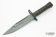 The M9 Bayonet by Lan-Cay features a bead blasted blade with sawteeth on the spine and hole in the blade that corresponds with the tab on the sheath to act as a wire cutter, .235" blade stock and 1.452" blade depth, hidden tang construction. The handle has a steel guard and butt with green nylon grip. Comes with original sheath. Has some light scuffs from the sheath, otherwise excellent condition.