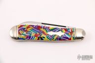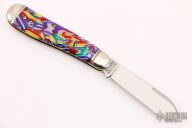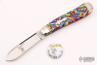 This Bird Dog Jack  features a satin finished drop point blade with swedge and nail nick. The handle is comprised of pinched nickel silver bolsters front/rear, escutcheon. and acrylic covers, over brass liners and stainless steel spring. Includes original tube and butcher paper wrap. Excellent condition.