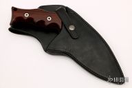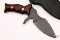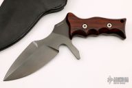 This Custom UUK was designed by Laci Szabo and executed by Robert Newton, .239" blade thickness and 2.076" blade depth. Sharpened top edge. Nicely contoured cocobolo scales. The UUK, or Urban Utility Knife is the most well-known of Laci Szabo's designs. Comes with a black leather sheath with belt loop. One mean field-tested tactical. Unused, excellent condition.