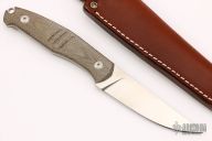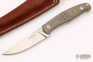 The GMF2 is the newest fixed blade design from Vox/Ansø and this first batch is special as it is our first "Save the Children" Fixed Blade batch. Ansø and Vox drew inspiration for the design of the GMF2 and leather sheath from the style of knives they grew up using in Denmark. A modern take on an old Nordic work blade. With its perfectly contoured micarta handle, this fixed blade design is comfortable in the hand, and hardy in the field. Whether you are shaving wood for a campfire or cutting rope for a hammock, the GMF2 will not let you down. Each GMF2 comes with a handmade leather sheath designed by Ansø and Vox specifically for this knife. As you may already be aware, GiantMouse donates $10 from the sale of every folding knife to the Save the Children organization. Well, our fixed blades were feeling a bit left out, and wanted to also help make a difference in the world. So, to make them happy (they are very sharp and pointy after all) we’ve come up with a special logo, as might be colored in by a child, to commemorate the first “Save the Children” fixed blade run. GiantMouse will donate $20 from the sale of every GMF2 and GMF2-P to the Save the Children organization. Each knife is individually numbered. Production unlimited at this time. See Review of GMF2 at MOTUS.com TECHNICAL DETAILS Materials: Blade Steel: Bohler N690 Cobalt high performance powder steel. Fine stonewashed finish. Handle: Green Micarta. Dimensions: Blade Length: 3.62" (92mm) Blade Thickness: 0.157" (4mm) Handle Length: 4.43" (112.6mm) Overall Length: 8.12" (206mm) Weight: 4.1 oz (116.23g) Manufactured to exacting quality standards in Maniago, Italy. Comes with sheath. Excellent condition.