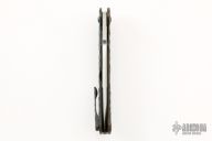 This Large Bastid folder by Jens Anso features a hand rub satin finished blade with thumbhole. The handle has a contoured and bead blasted timascus frame and titanium clip, titanium timascus backspacer. Smooth action. Nice blade seating, detent, and lockup. Excellent work. Comes with zippered case. "26329" inside frame. Excellent condition.