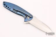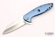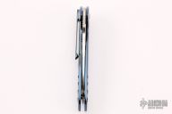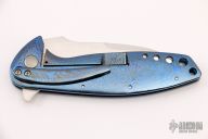 This Nitro linerlock flipper by Peter Carey features a hand rub satin finished blade with a false top edge, notched thumbrest and flipper. The handle has a black timascus frame and tip down clip. Nice detent, lockup and blade seating. Excellent condition. Comes with a velcro case.