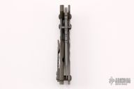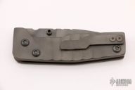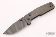 This knife by Crusader Forge features a phantom finished blade with notched thumbrest and dual thumbstuds. The handle has a bead blast finished titanium handle with a titanium liner and tip up clip, left or right reversible. Excellent condition.