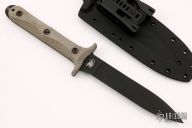 Two different steels are offered in the series, CPM-3V which has been DLC coated black, and O-1 Tool steel which has been parkerized just like the vintage knives of WWII! Handle material for these are Black Micarta and OD Green Micarta. For sheaths, they again turned to buddy David Brown of Buy Brown sheaths for a incredibly made kydex sheath with TeK-Lok.