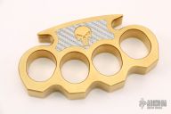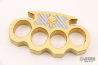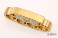 This Custom Brass Knuckle by Burn Knives is made from .750" thick brass with silver twill inlays. Has some light scuffs, otherwise Excellent condition.