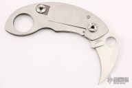 "Our Thomas/Spyderco folding Karambit is all-stainless with an arcing blade shape that carries through into a curved handle creating, in a sense, a large claw. Positioned at the end, for an index or pinky finger, the ring lets you to swing/rotate the blade into different grip positions. When closed an accessible nick/recess in the steel handle channels the thumb to, and then over, the Spyderco Round Hole for immediate blade deployment. To facilitate opening the blade even quicker, the hole is expanded to 13mm in diameter. On the backside, the handle scale is laser cut into a Chris Reeve Style integral Linerlock. The blade is made from VG-10 and double flat-ground with a finger guard behind the cutting edge and a sizeable thumb-positioning spine cusp above the hole. These ergonomics merge making the piece feel comfortably curved and easily controlled in the hand. A flat, broad steel clip completes the package and is outfitted with the necessary hardware to position for tip-up/tip-down and left- or right-hand carry. Discontinued Product - No Longer Available."