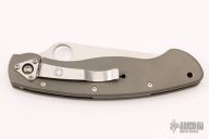 This Military by Spyderco features a satin finished S30V blade with notched thumbrest and thumbhole. The handle has a bead blasted titanium frame with tip down stainless steel clip and black g10 backspacer. Comes with original box and papers. Excellent Condition.