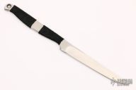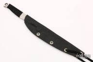 This Spike by Barry Dawson features a satin finished blade with .118" blade stock and .609" Blade depth. The handle has black epoxy soaked cord wrapped handle. Comes with a kydex sheath. Excellent condition.