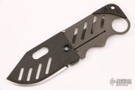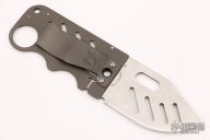 The Creditor II D2 Clip Point by John Kubasek is nearly the size and shape of a credit card. It features a laminated d2/carbon fiber blade, titanium frame with carbon fiber scale, and bead blasted titanium money clip. Has a few light scratches, otherwise excellent condition.