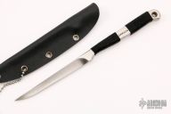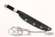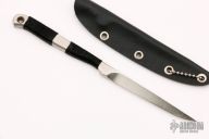 This Spike by Barry Dawson features a satin finished blade with .220" blade stock and .384" Blade depth. The handle has black epoxy soaked cord wrapped handle. Comes with a kydex sheath. Excellent condition.