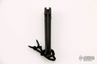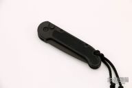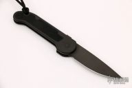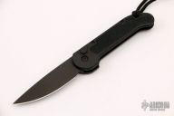This UMS side opening coil spring automatic by Microtech features a black blade and black aluminum handle with non-slip inlays. Sliding safety. This knife is completely sterile with no markings. Excellent condition.