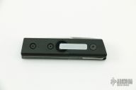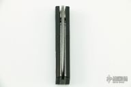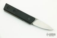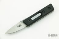 This little auto has a satin finished blade. The handle has aluminum bolsters and wood scales with black stainless steel liners and black fiber backspacer. Excellent condition.