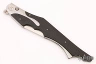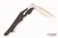 This Automatic Axe is a collaboration between Allen Elishewitz and Joel Pirela, it features a hand rub satin finished blade with false top edge. The handle has stainless steel bolsters with integral liners, carbon fiber scales, black G-10 backspacer. Nice lockup and blade seating. #6 on the blade. Comes with a zippered case. Excellent condition.