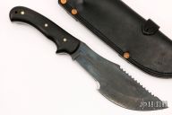 "These knives were formally known as the original "TRACKER" knives from the registered trademark, which I was the first to own & stamp on my blades during the '90's. After a brief retirement & the release of the 2003 Paramount Pictures film "The HUNTED" in which my Model "C" TRACKER knives were used & displayed, I resumed making my original TRACKER knife patterns but changed the name to avoid questionable trademark right disputes. In 2003 I was the first to coin the name "WSK" or Wilderness Survival Knife to this design. With over 22 years of refinement from personal service, feedback from customers & extensive field testing & use by top survival instructors & Elite military from around the world, my WSK knives have evolved into perfection & have repeatedly proven themselves in the field from real world survival to combat in many of our country's latest conflicts. Today you will see many variations by other makers but none can match the history, function & performance of my knives which are still the standard by which all others are judged. All the WSK knives I offer continue to be individually hand-crafted by myself from the contouring of the blades to the hand cut saw teeth to ensure the highest degree of craftsmanship & performance. Each blade is crafted from high carbon tool steel & skillfully deferentially hardened & tempered for superior edge holding & blade resilience. Handle grips are permanently fastened by stainless steel Loveless bolts with solid brass nuts, lined lanyard hole and guaranteed never to loosen under the hardest use. My sheaths are personally crafted for a custom fit from heavy leather that's been double stitched & finished for long wear. My field-grade knives retain all the same quality construction, differential heat treatment & performance as my high grade collectible knives but come with less costly cosmetic refinements for more practical field use."
