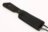This is a Duane Dwyer custom knife with a "Chain Link" coated blade and black G-10 scales, .111" blade thickness and 1.210" blade depth, full tang construction. Excellent condition. Comes with a kydex sheath.