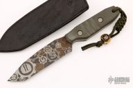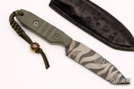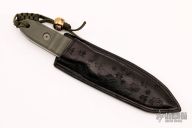 This Duane Dwyer fixed blade features a chisel ground laser etched tanto blade and micarta handle. Includes a custom leather sheath with Strider and Starlingear logos. From a limited run of 10 knives made for the 2009 Blade Show. Excellent condition.
