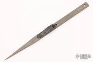 This spike from Duane Dwyer features a bead blasted finish and a flamed titanium clip. Has some scuffs, otherwise excellent condition.
