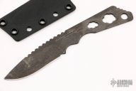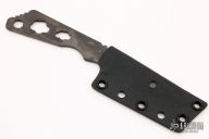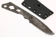 This ED by Strider Knives features a drop point blade with a notched thumbrest, .101" blade stock and 1.012" blade depth, integral skeletonized construction. The handle has a bullet shaped hole cut out to save weight. The knife has a rifle laser engraved into the handle. Comes with a kydex neck sheath. Has some scuffs, otherwise excellent condition.