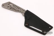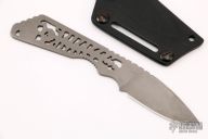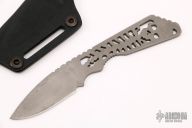 This ED by Strider Knives features a drop point blade with a notched thumbrest, .129" blade stock and .996" blade depth, integral skeletonized construction. The handle has skeleton shaped holes cut out to save weight. Comes with a kydex neck sheath. Has some scuffs/scratches, otherwise good condition.