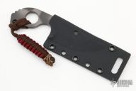 This SLCC by Strider is a TAD Gear edition. It features a tiger stripe persian blade with notched thumbrest, .195" blade stock and 1.345" blade depth, full tang construction. Comes with a kydex sheath. Has some scuffs, otherwise excellent condition. Has a Starlingear bead on the lanyard. Comes with a velcro case. Might be a dozen of these made. Only about a dozen of these were made, almost all of which originally came with a custom leather TAD Gear jacket, this was one of the extras!