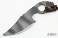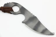 In 1988, he began making specialized knives for use by the military. This turned out to be fortunate turn of events, both for Mick and for the knife using world at large. Mick’s approach was to not get burdened by the weight of past designs. He started with a tabula rasa, a clean slate, informed only by his own experiences and knowledge of what a soldier needed in a knife. The knives he made didn’t look like the hunter-inspired knives seen in most PXs; instead they were almost brutish in their functionality: beefy, solid, and with unbreakable ¼” stock full tangs. These knives were the first indication of his innovative approach: in addition to their utilitarian design, the knives carried a subdued finish and subdued sheaths. No one carrying a Strider knife was going to be spotted because of sunlight glinting off of polished steel or a glossy leather sheath. Soldiers, policemen, and other men going into harm’s way couldn’t buy them fast enough. Mick sampled some good ideas, but made them great. For instance, he was not the first to wrap a knife handle with paracord, but he was the first to do it in a way that was tough enough for sustained infantry use. His knife line grew over the following years to include different varieties of fixed blades, all distinctive and many with specialized uses. But constant in all of them was a disregard for convention, and a desire to try new ideas. An example of this was the Ajax – it featured a very wide blade surface clearly designed to inflict damage. It drew on the weapons carried by Roman legionnaires, yet was modern and usable in the 21stCentury battlefield. Mick also worked on his technical skills, always striving to become better at the physical craft. At the 2002 Blade Show, a group of the best tactical knifemakers in the country decided to compete with each other to produce the most innovative and interesting fixed “battle blade” at the show. Mick’s entry, an incredible integral knife made out of ½” titanium stock with a zippered composite blade, gorgeous handles, and integral guard was the unanimous winner, and effectively retired the competition.