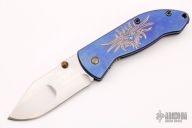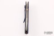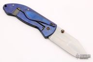 This Rockstar by Jim Burke and Neil Blackwood features a hand rub satin finished blade (Ground by Neil Blackwood) with a notched thumbrest and dual thumbstuds. The handle has an orange peel finished and anodized titanium frame, backspacer and tip down clip, lanyard hole at the butt. Nice detent, lockup and blade seating. Excellent condition.