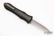 This knife is a Deadlock Model C by Grant and Gavin Hawk. It has a double-edged stonewashed blade. The handle has a carbon fiber and black aluminum frame with a tip down spring clip, titanium. The thumb slide on the handle is also titanium and handle has titanium overlays. Comes with a cloth pouch. Grant and Gavin Hawk set out to create a double action OTF with no blade play.... They did it, NO blade play. Comes with tool, cloth pouch. Excellent Condition.