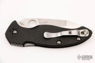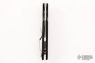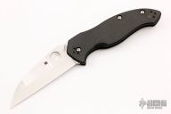The Canis from Spyderco is a spectacle of a knife designed for everyday carry. The blade is made of CPM-S30V, and features a truly unique blade profile and grind. It has a Wharncliffe shape, a flat grind, and a ground out section which reduces weight, but full spine thickness near the tip to reinforce it. The handle is made of a carbon fiber/G-10 laminate with a gentle texture to hold it nicely in the hand.