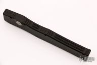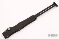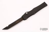 This HALO III is the tanto blade model in the HALO series by Microtech Knives. Single action, side positioned button for firing. Closure via a reverse charging handle in the rear of the frame. Contoured frame grip with milled ribbing on the frame spine and belly. Dated 11/99 and S/N 0436. Has some light scuffs, otherwise good condition.
