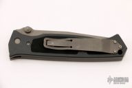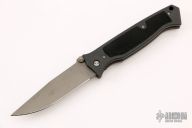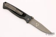 This D/A Vallotton Chameleon by Microtech is dated 5/96, numbered 729, and has the Vallotton logo on the back side of the blade. The release button for automatic opening is under the end of the clip. Perfect function. Has a bead blasted AEBL blade, black aluminum scales with rubber inlays, bead blasted titanium liners, tip up titanium clip. Scratches are visible on the blade and handle otherwise the knife is in good condition.