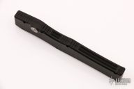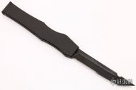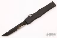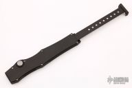 This HALO III is the tanto blade model in the HALO series by Microtech Knives. Single action, side positioned button for firing. Closure via a reverse charging handle in the rear of the frame. Contoured frame grip with milled ribbing on the frame spine and belly. Dated 11/99 and S/N 0405. Has some light scuffs, otherwise good condition.