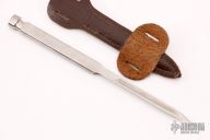 This Sleeve Dagger by EK knives was produced by H.G. Long and Co. Has a bead blast finished triple edged triangle dagger blade. Comes with original brown leather sheath. Has a few light scratches, otherwise excellent condition.