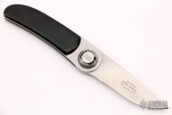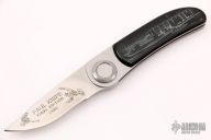 This Paul knife was part of the Final Edition in 1986 of Paul knives Gerber ever manufactured. This folder has an axial locking mechanism. Has black paper micarta scales with scrimshaw. Excellent condition. #0147/1000