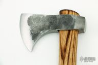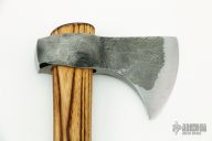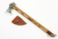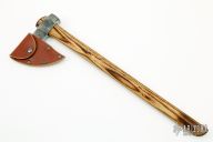 This tomahawk by Andrew K Smith features a hand forged head. Has a 20" burnt hickory shaft. Comes with leather blade cover with snap. Finishes may vary. New From Maker!