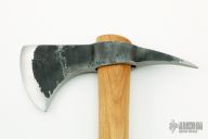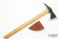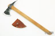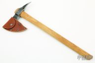 This tomahawk by Andrew K Smith features a hand forged head with a 3" spike at the rear. Has a 20" hickory shaft. Comes with leather blade cover with snap. Finishes may vary. New From Maker!