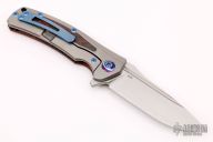 This Horizon D by Reate Knives features a hand satin M390 blade, Fat Carbon show scale and lock side inlay, as well as Chad Nichols MokuTi pivot collars!  Nice detent, lock up and blade seating.  Includes the original box. Excellent Condition.