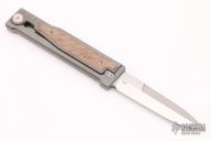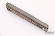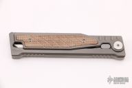 • Bead blasted titanium handle with textured micarta scales in brown.