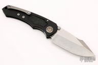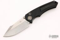 This D/A Pariah Auto by Heretic Knives features a stonewashed blade with notched thumbrest and dual thumbstuds. The handle has a black aluminum frame with non-slip inserts, flamed titanium pivot collars and a tip up clip with ceramic ball. Comes with original box. S/N 00041. Dated 12/2021. Excellent Condition.