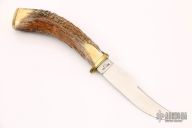 This Small Game Knife from Case Knives features a satin finished upswept blade with swedge and Pheasant artwork on the "A" side of the blade. The handle is comprised of a brass single guard and pommel and stag handle over hidden tang construction. Includes original leather belt sheath. Excellent condition.