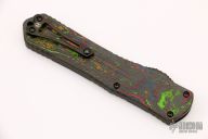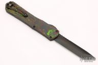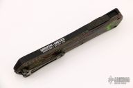 This Manticore-X by Heretic Knives features a DLC  coated tanto blade with notched thumbrest. The handle has a black aluminum frame with a camo carbon-awesome 80's back cover, black stainless steel hardware and black tip down clip.  Comes with original box, papers and sample tube of OTF Lube.  S/N 057.  Excellent Condition.
