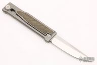 • Bead blasted titanium handle with textured micarta scales in green.