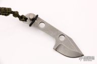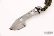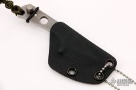 This neck knife by Kevin Wilkins features a tumble finish with .178" blade thickness and 1" blade depth, full tang construction. Comes with a kydex neck sheath. Excellent condition.