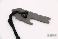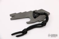 Handmade using S30V stainless steel by Peter Atwood, the PryBaby features a pry tool with nail puller/wire stripper notch, screwdriver and bottle opener. Thong hole with nylon lanyard. bead blast finish.This version also features a pivot pin spanner wrench for Strider folders. Has some scuffs, otherwise good condition.