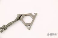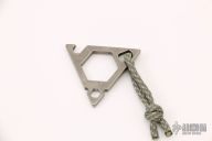 "Made of aircraft grade 6AL4V titanium, this unique multitool features a 1/4" hex opening with O-ring retention system, 7/8" hex opening, O2 wrench/lanyard hole and bottle opener." Tumble finished Titanium. Comes with a kydex sheath, excellent condition.