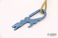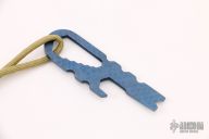 "Prybaby Tools are made of Titanium. Standard features include pry tool with nail puller/wire stripper notch and bottle opener. Special G3 version features six SAE wrench sizes: 1/4, 5/16, 3/8, 7/16, 1/2, and 9/16." Anodized chainlink finish. Has a few light scuffs, otherwise excellent condition.